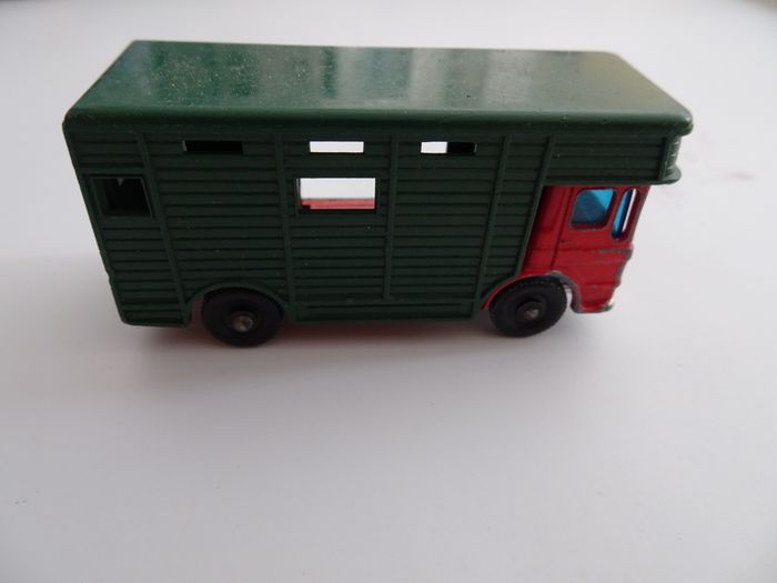 Voiture camion miniature en métal : Matchbox ergomatic cab horse box, n° 17, made in England, by Lesney, en bon état. La peinture est partie à certains endroits.