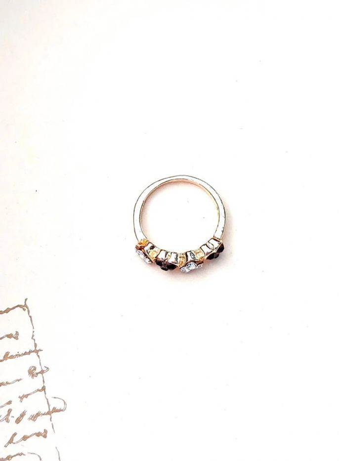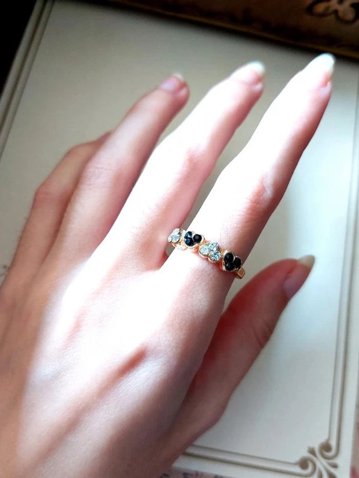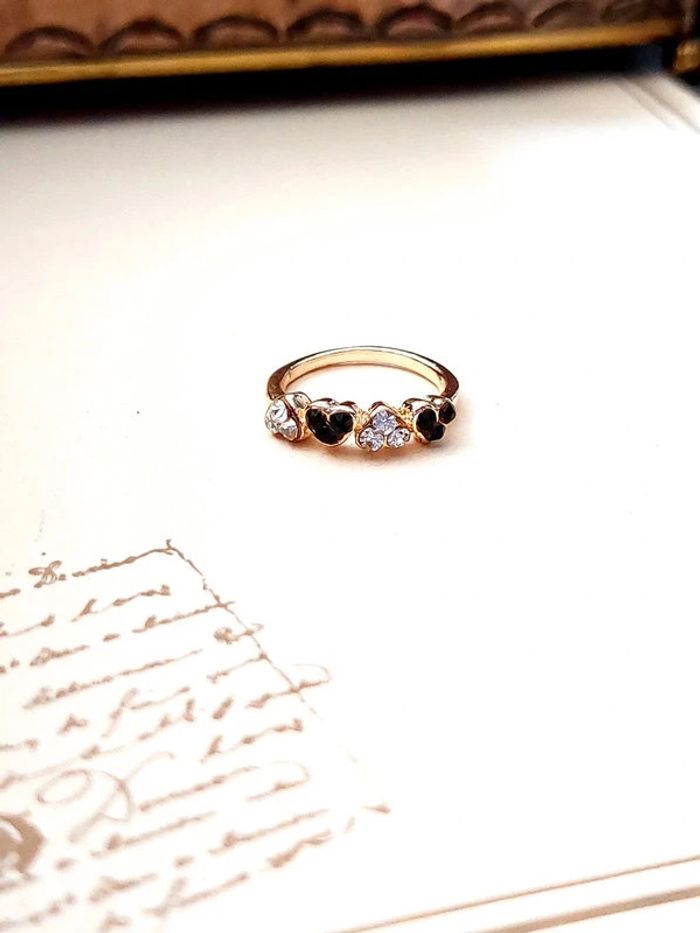 Magnifique bague fine, style alliance, doré avec pierres formant des petits cœurs de couleur blanc et noir. Très bon état. Taille 50. D'autres bijoux sont à découvrir dans mon dressing #bijouxsupernova 🌌 Je suis disponible pour d'autres renseignements / ou demandes de lot. 🌌 Les envois se font soit le jour même ou en 72h maxi ! 🌌 J'accepte les offres raisonnables et les réductions sont activées sur les lots, de plus, un petit cadeau est toujours rajouté au colis. Tags Vintage chic hippie 60's 70's 80's 90's 00's Y2k foulard soie collier bijoux fantaisie signature boucles d'oreilles bague bracelet manchette jonc parure pendentif médaille religieux ancien brocante antiguo antico juwelen bigiotteria joyería antigua antique antik vieux victorien belle époque 1920 art déco art nouveau 1930 années 50 lot gros lot lotto set carré friperie poinçon pièce rare argenté doré bronze perles strass