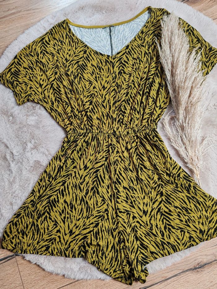 Jolie combi short zébré Resserré à la taille avec un élastique Décolleté V #vetementsfemme36_alycia1628 #combishortfemme_alycia1628