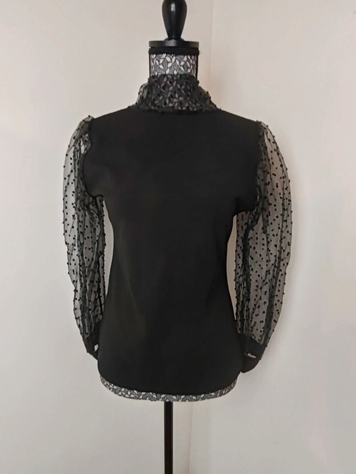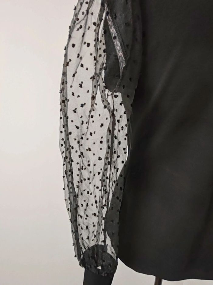 Jolie blouse manches bouffantes, manches transparentes avec petits points. Col montant avec nœud à l'arrière, même matière que les manches. Sans étiquette correspond à un 36 #vetementsfemme36_alycia1628 #teeshirtfemme_alycia1628