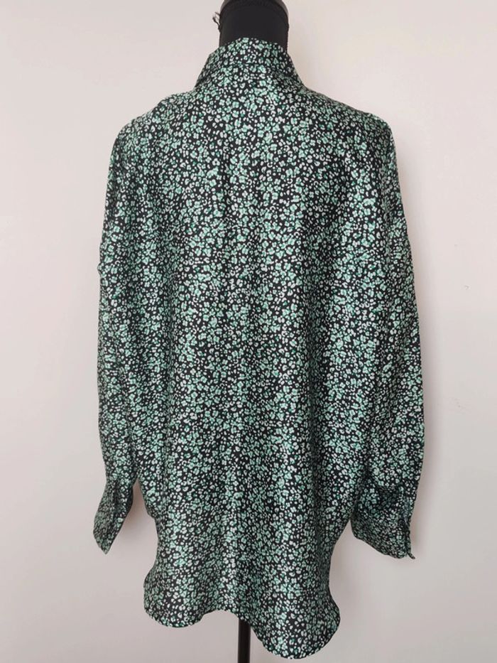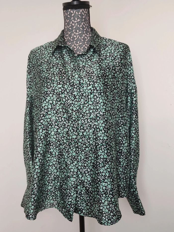Jolie chemise effet satin avec motifs vert et blanc. Deux boutons au poignet. Taille xl #vetementsfemme42_alycia1628 #vetementsfemme44_alycia1628 #chemisefemme_alycia1628