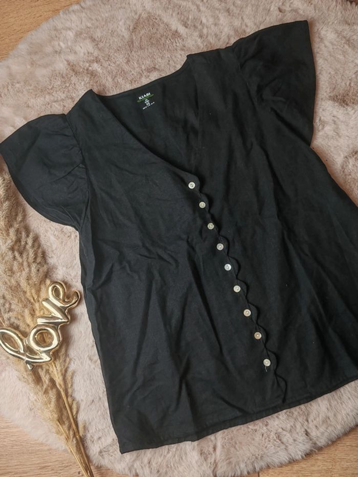 Blouse en lin manche courte, petits boutons effet nacré. #vetementsfemme34_alycia1628 #blousefemme_alycia1628 #teeshirtfemme_alycia1628