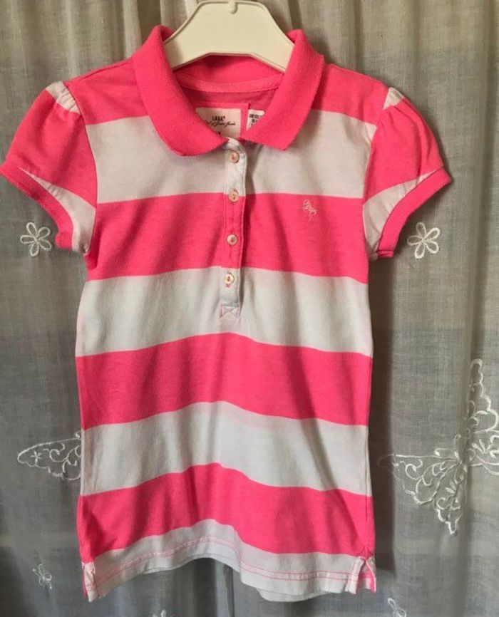 Polo larges rayures rose fluo 8 ans H&M - photo numéro 1