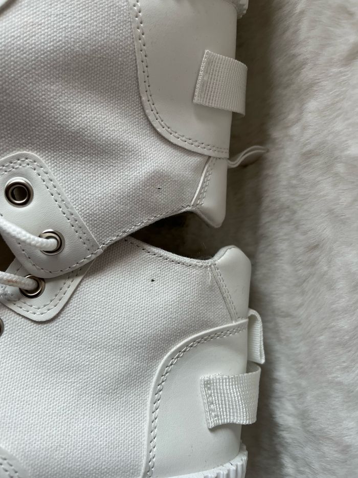 Bottines / Baskets blanche 39 Neuve, mais à pris un peu de poussière sur un des lacets et sur une petite partie d une chaussure et petite trace laissée par l antivol, peu visible, voir dernières photos