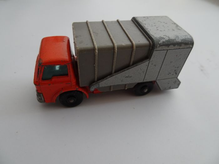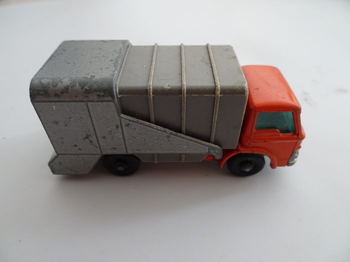 Voiture camion miniature en métal : Matchbox refuse truck, n° 7, made in England, by Lesney, en bon état. La peinture est partie à certains endroits.