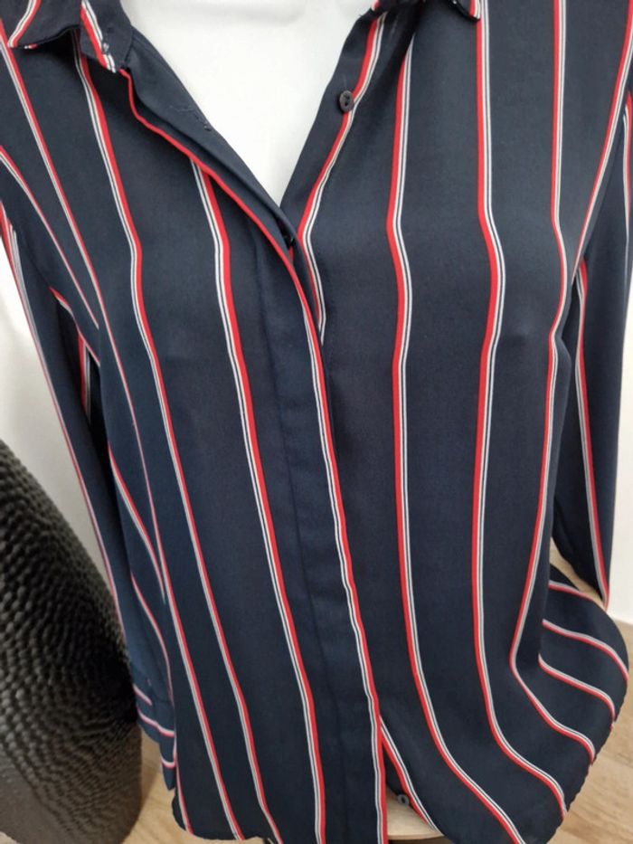 💙 Chemise bleue marine rayée noir et rouge M - photo numéro 3