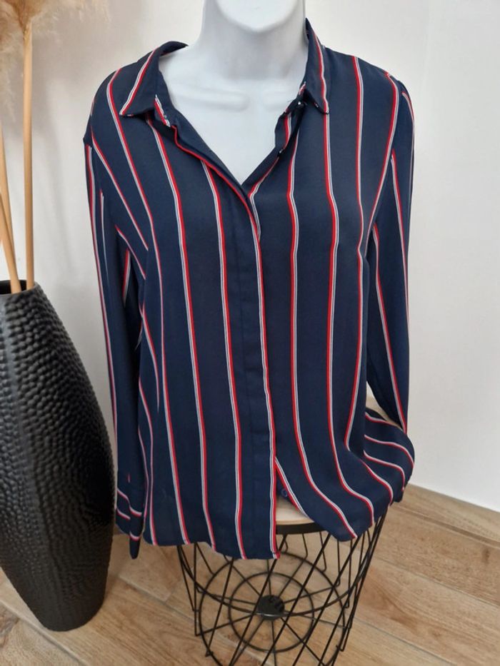 💙 Chemise bleue marine rayée avec boutons cachés 💙 Taille M 💙 Pimkie 💙 Très bon état #FemmeMlauraa