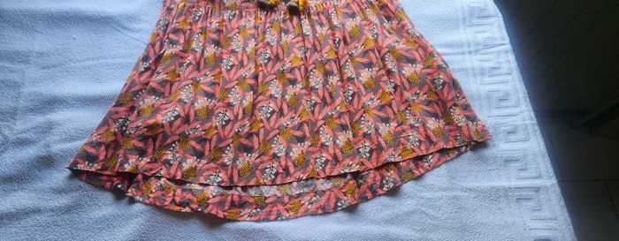 Robe fleuries en taille XS, elle est fluide et confortable à porter. Elle arrive au-dessus des genoux, un peu plus que mi-cuisse. Porter peu de fois car trop petit pour moi