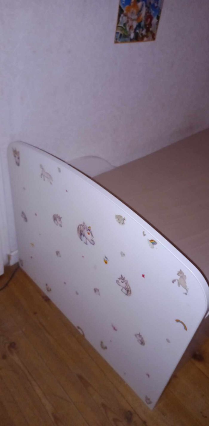Je vend lit tiroir licorne avec matelas et drap offert acheté lit sans matelas 400 euro moi je le vend 300 complet avec matelas et drap
