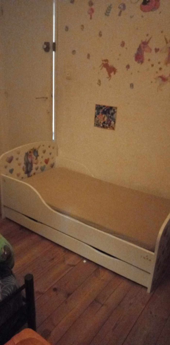 Je vend lit tiroir licorne  avec matelas   et drap  offert  acheté  lit sans  matelas  400 euro moi je le vend 300 complet avec matelas et  drap - photo numéro 2