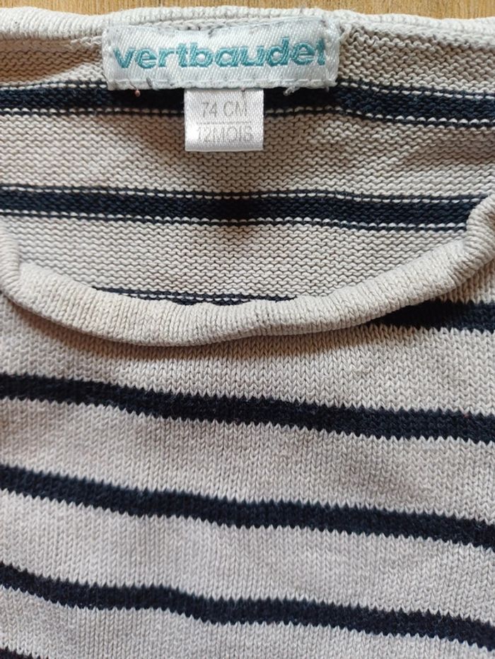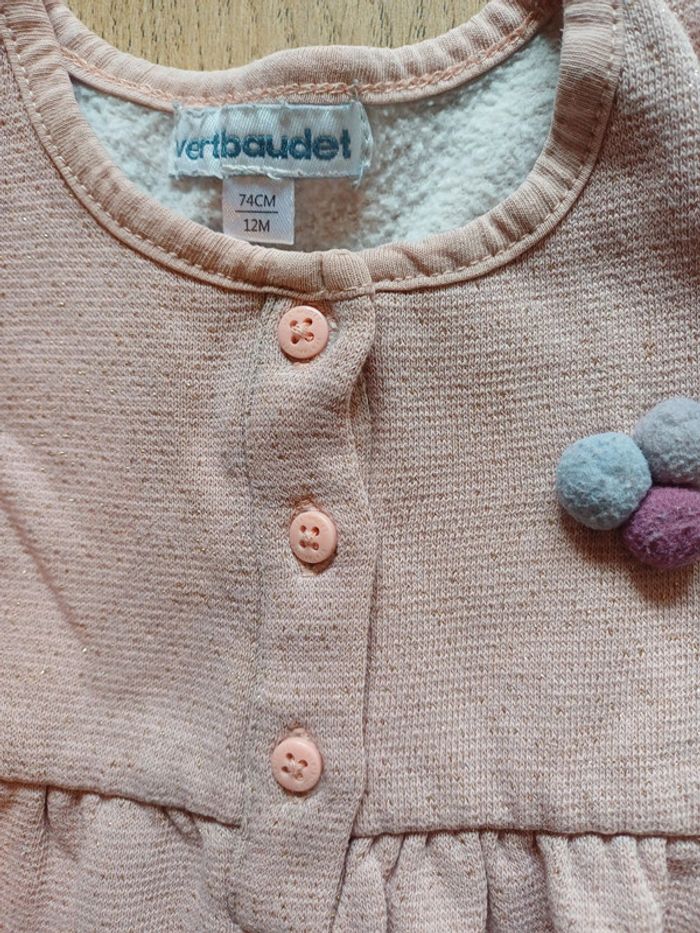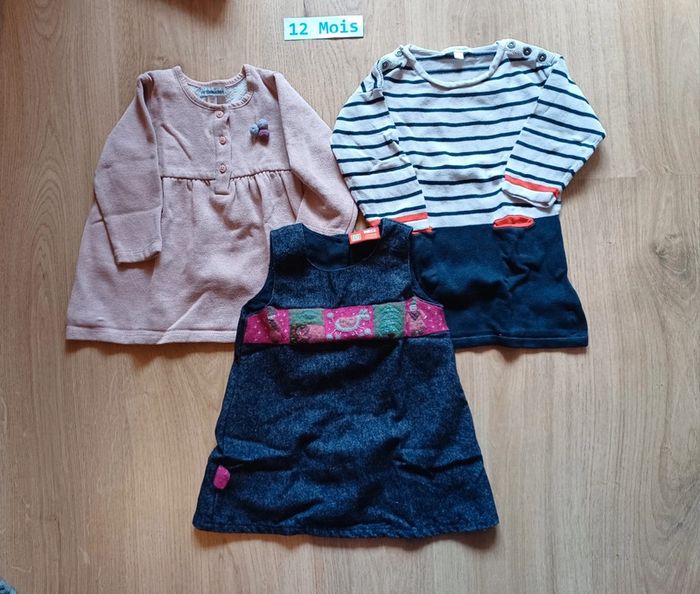 En très bon état. 2 de la marque Vertbaudet, une rose chaude et une marinière et une robe de la marque DPAM #Fille12moisSacha #robe #rose #mariniere #bleu