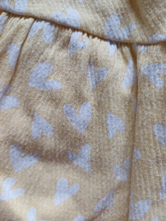 En excellent état. Une jupe culotte jaune de la marque Kiabi avec motifs cœurs, 2 shorts Kiabi, un Violet et un noir avec motifs marguerites et un short Lulu Castagnette rose vif #Fille4ansSacha #short #jupeculotte #jupe #coeurs #fleurs