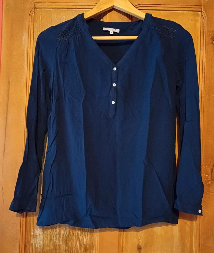 Blouse fluide et très légère de la marque La Halle. Très peu portée en excellent état. Petit détail ajouré au niveau des épaules #VêtementsetAccessoiresFemmeAudreyB #blouse #chemise #fluide #bleu