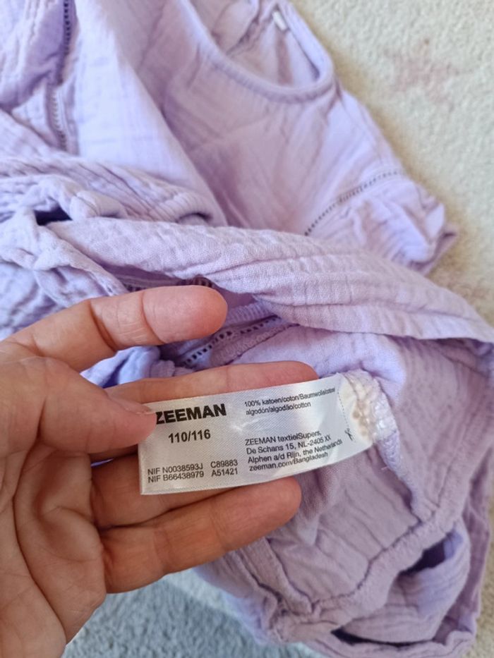 Blouse tee shirt chemise manches longues tunique style gaze de coton Fille 5/6 ans Zeeman 100% coton