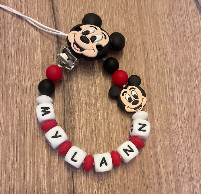 Attache tétine personnalisé en silicone ou en bois au souhait de l’acheteur . Personnalisable au choix de l’acheteur que ce soit la couleur comme le prénom ou le thème . Le fil est doublé pour plus de sécurité tout le long de l’attache tétine. N’hésitez pas à me demander et regarder mon dressing. Une photo vous sera envoyée avant l’expédition pour vous ayez un aperçu du rendu. Tous les produits sont réalisés avec du materiel spécial conçu aux bébés , enfants.