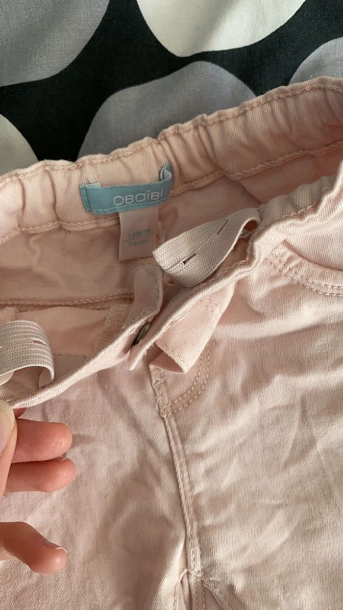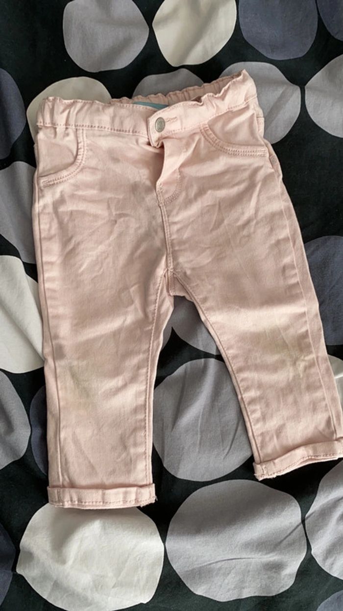 👧🏼👖 petit pantalon mi saison Couleur rose pâle Légère usure au niveau des genoux Taille 12 mois