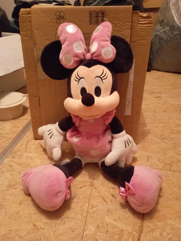 A vendre peluche Minnie rose en bon état. Elle fait environ 40 cm.