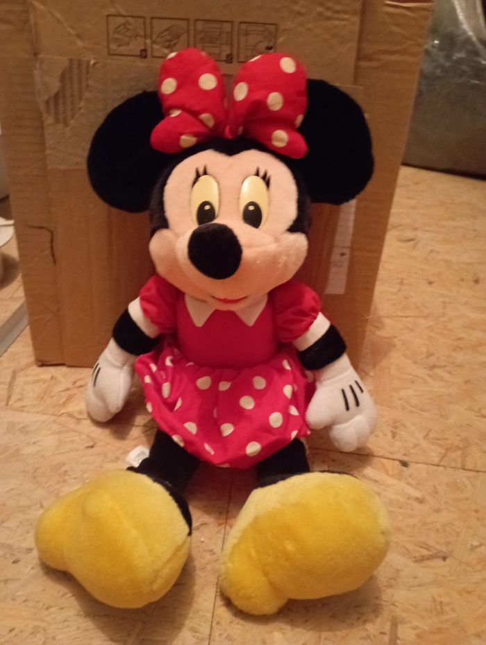 A vendre peluche Minnie rouge en bon état. Les yeux ont légèrement jaunies. Elle fait environ 40 cm.