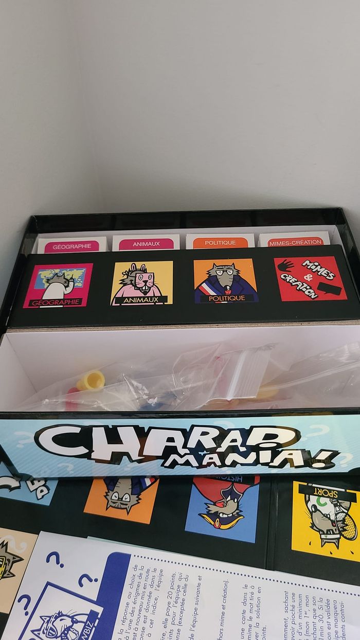"Charad'Mania !" se joue en équipe, donc il faut au moins 4 joueurs, 2 par équipe. Il y a un petit plateau avec un parcours et des cases "thème" : sport, arts, politique, showbiz, géographie, animaux. On trouve aussi quelques cases spéciales comme "mimes" ou "création". Chaque équipe place un jeton a sa couleur sur la case départ et se voit attribuer un capital de 50 points. À son tour, l'équipe active lance un dé et avance du nombre indiqué puis réalise l'action correspondant à la case d'arrivée.