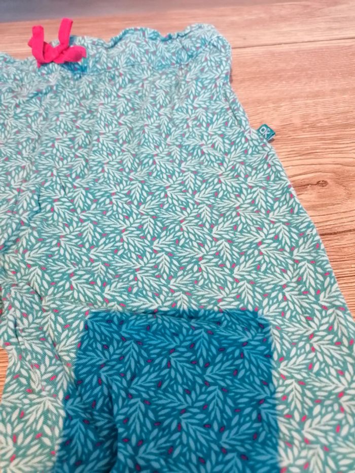 Bonjour, je vends ce pantalon turquoise à motifs de la marque Okaïdi taille 4ans en très bon état. Lavé maison non fumeur.