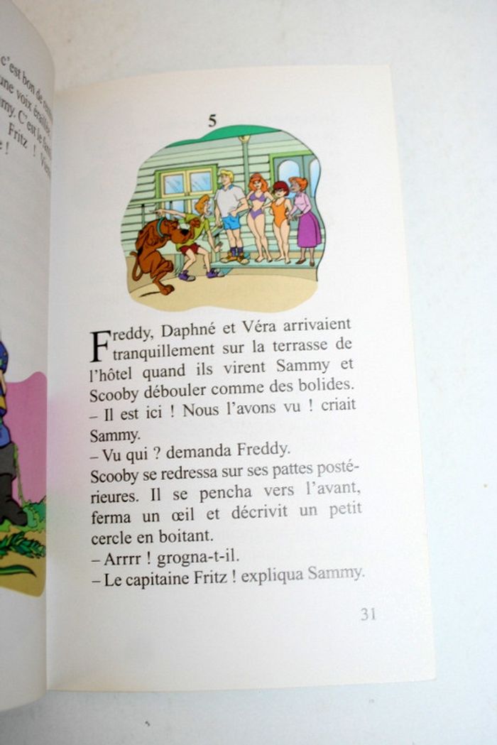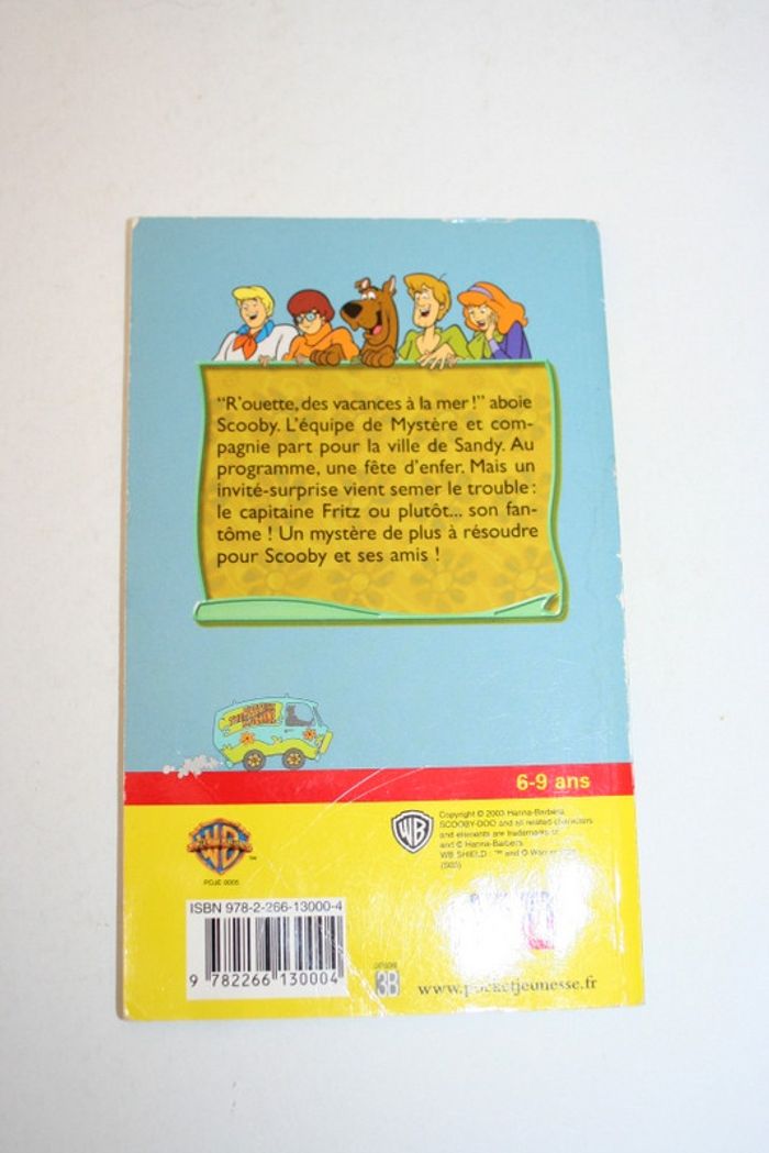 Scooby-Doo et le fantôme du pirate de chez Pocket Jeunesse, 62 pages, un peu usé sur la tranche, de 6 à 9 ans, 100g "R'ouette, des vacances à la mer!" aboie Scooby. L'équipe de Mystère et compagnie part pour la ville de Sandy. Au programme, une fête d'enfer. Mais un invité-surprise vient semer le trouble : le capitaine Fritz ou plutôt ...son fantôme! Un mystère de plus à résoudre pour Scooby et ses amis!
