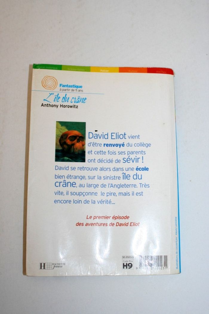 L'île du crâne de Anthony Horowitz, Livre de poche jeunesse, collection fantastique, abimé à la tranche + a pris un peu l'humidité, à partir de 11 ans, 180 pages, 150g David Eliot vient d'être renvoyé du collège et cette fois ses parents ont décidé de sévir! David se retrouve alors dans une école bien étrange, sur la sinistre île du crâne, au large de l'Angleterre. Très vite, il soupçonne le pire, mais il est encore loin de la vérité....