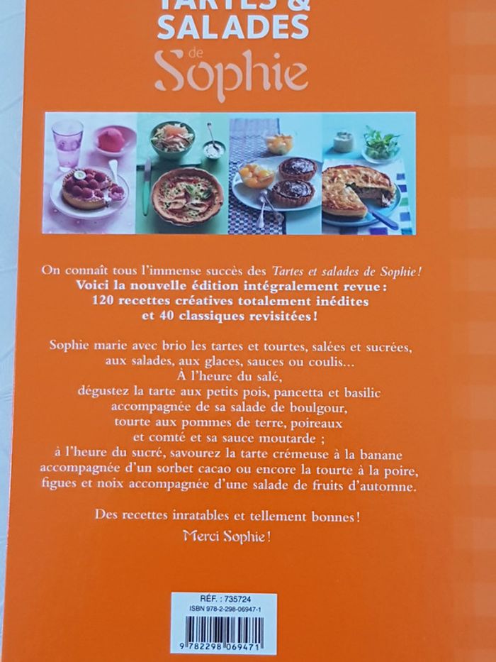 Livre tartes et salade de Sophie 120 recettes créatives totalement inédites et 40 classiques revisitées. neuf #ag89livres