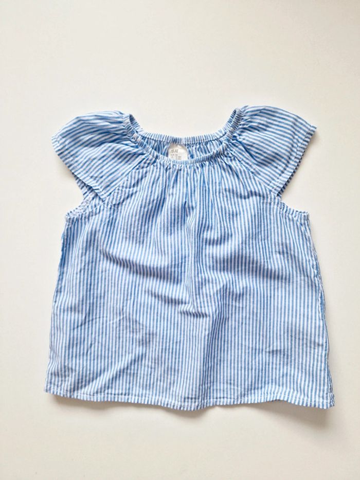 Tous mes articles H&M : #hmsev Tous mes tops : #topsev Toutes mes blouses : #blousesev Tous mes habits ♀️ 12 mois : #12moissevfille Tous mes habits ♀️ 18 mois : #18moissevfille 🚨 Prix fixe Top / blouse sans manches Marque : H&M Couleurs : bleu et blanc Taille : 12/18 mois - 86 cm État : très bon état 100% coton Retrait sur place ou envoi.