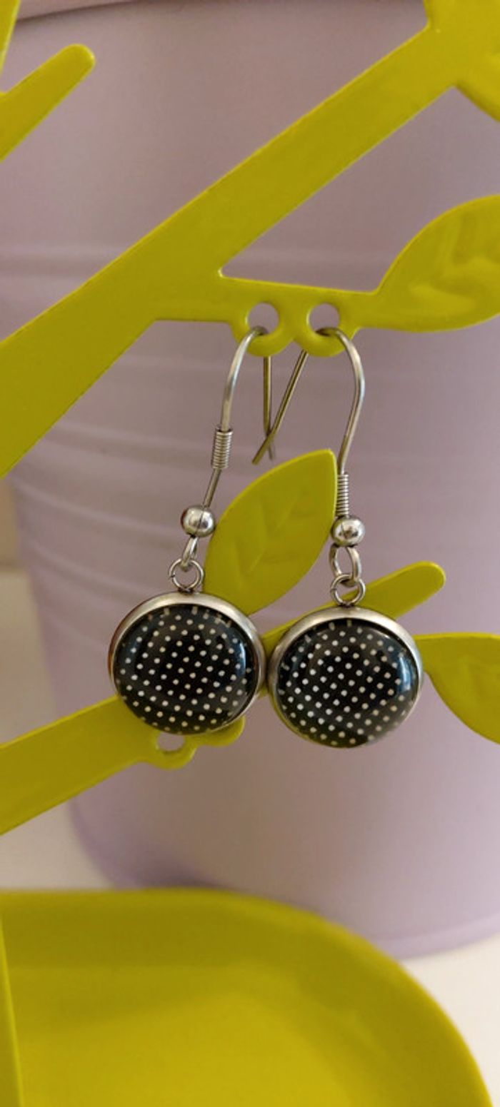 Boucles d'oreilles avec cabochon. Neuves. Acier argenté.