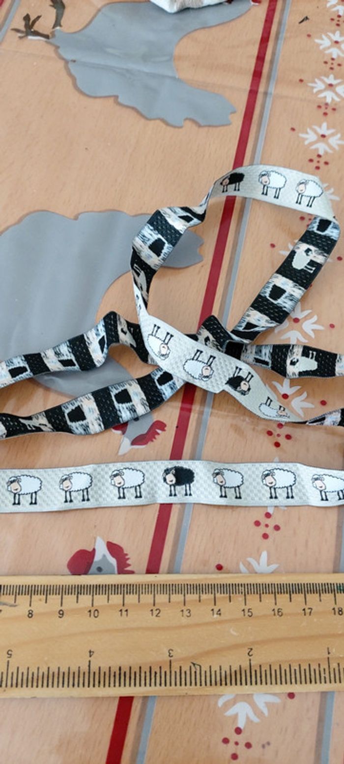 Ruban mouton noir et mouton blanc. Environ 112cm. A coudre.