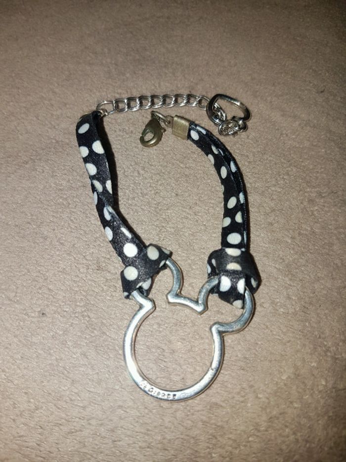 Tres jolie bracelet tête de mickey, 2 lannieres de tissus qui s accrochent aux oreilles ou à la tête de mickey. Tbe.