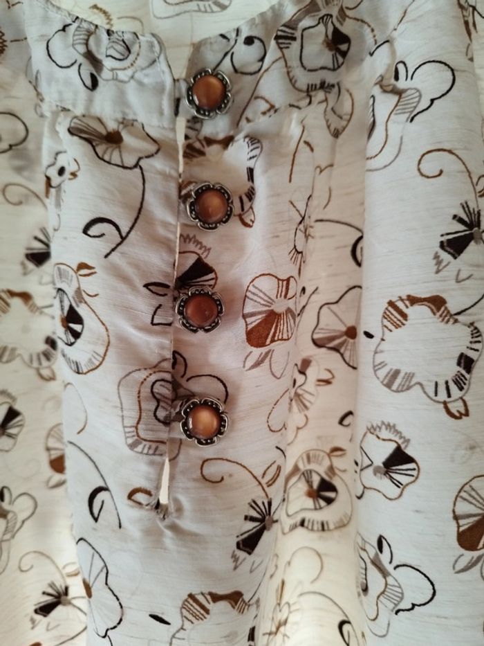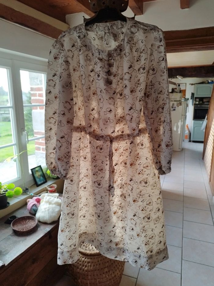 Magnifique robe à l'esprit très bohème Manches longues 4 boutons à l'encolure Taille réglable par un cordon à nouer Coupe évasée En coton et viscose En très bon état général mais un minuscule trou derrière (dernière photo) Plus d'étiquette taille, vérifiez vos mesures Épaules : 38cm Aisselles : 57cm Taille desserrée : 54cm Longueur : 94cm