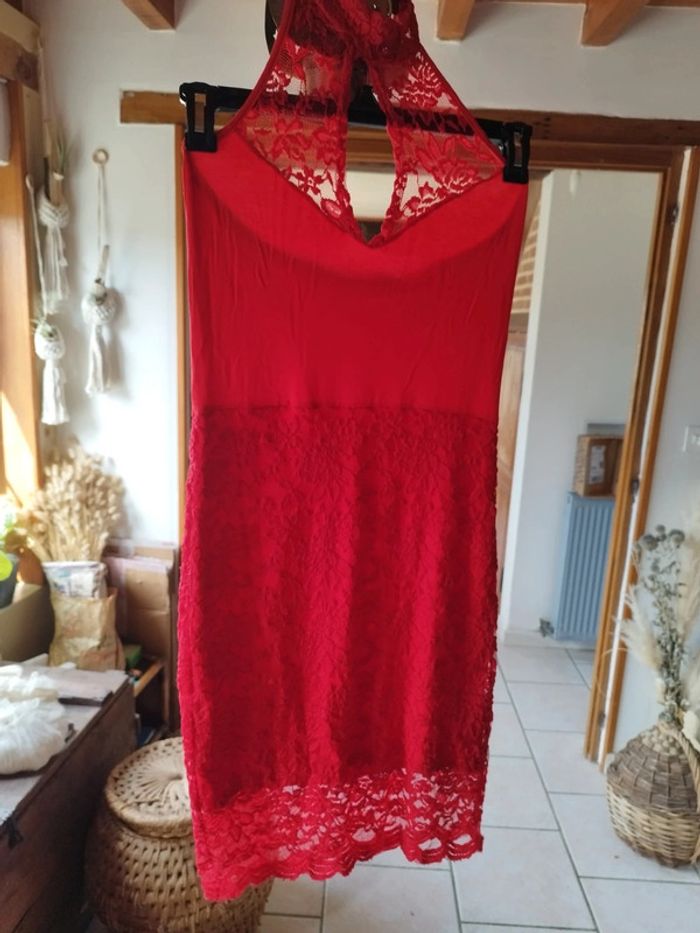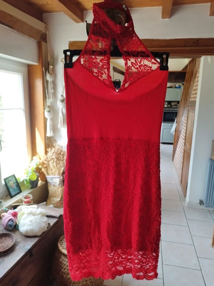Sublime robe ultra sexy Décolleté goutte avec 2 boutons autour du cou Dos nu Doublure 95% viscose. 5% elasthane Très bon état Taille S