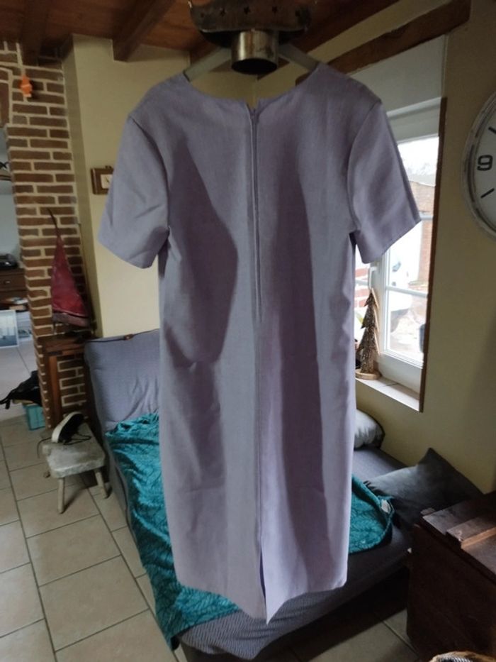 Jolie robe entièrement conçue et cousue par ma maman dans les années 90 Coupe ultra féminine qui peut être à la fois chic et sexy Jolie couleur lavande claire (entre le rose pâle et le gris) Longue glissière au dos Fente de 18 cm derrière Tissu coton et polyester Excellent état Convient jusqu'au 44, vérifiez vos mesures : Épaules : 42cm Aisselles : 48cm Taille : 47cm Hanches : 51,5cm Longueur : 100cm
