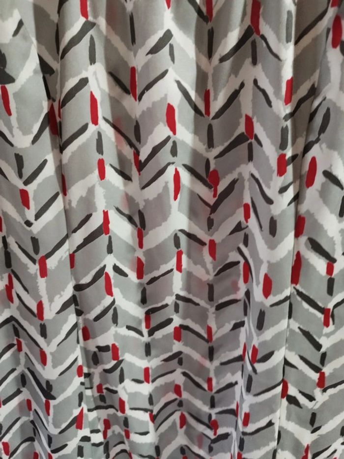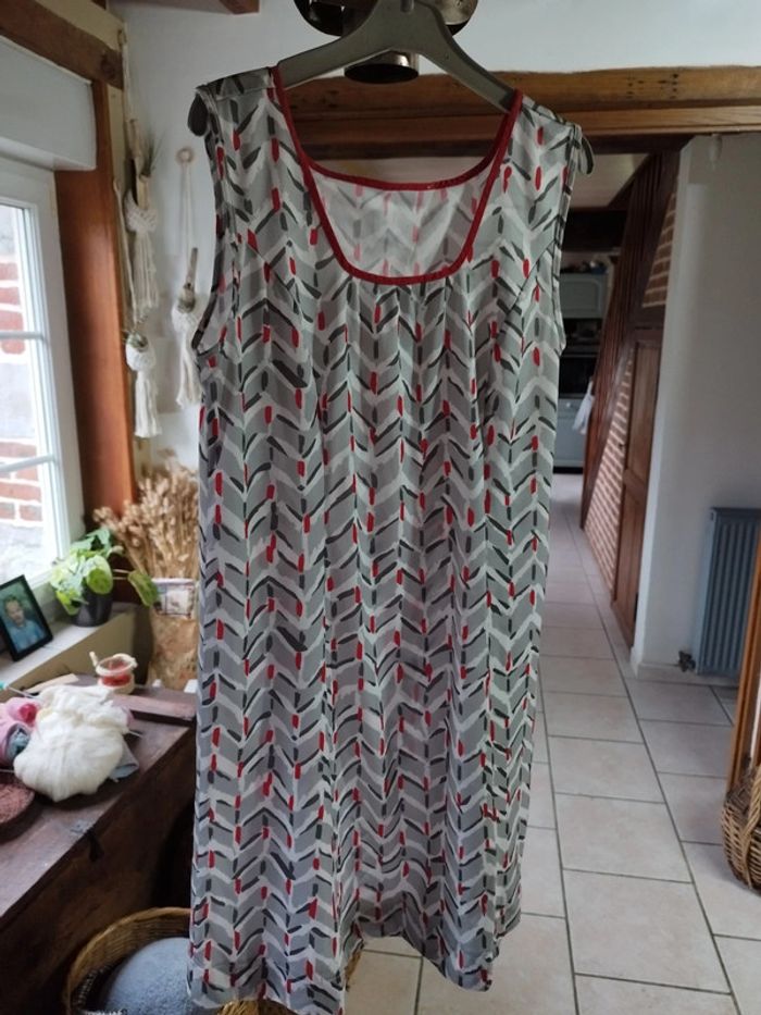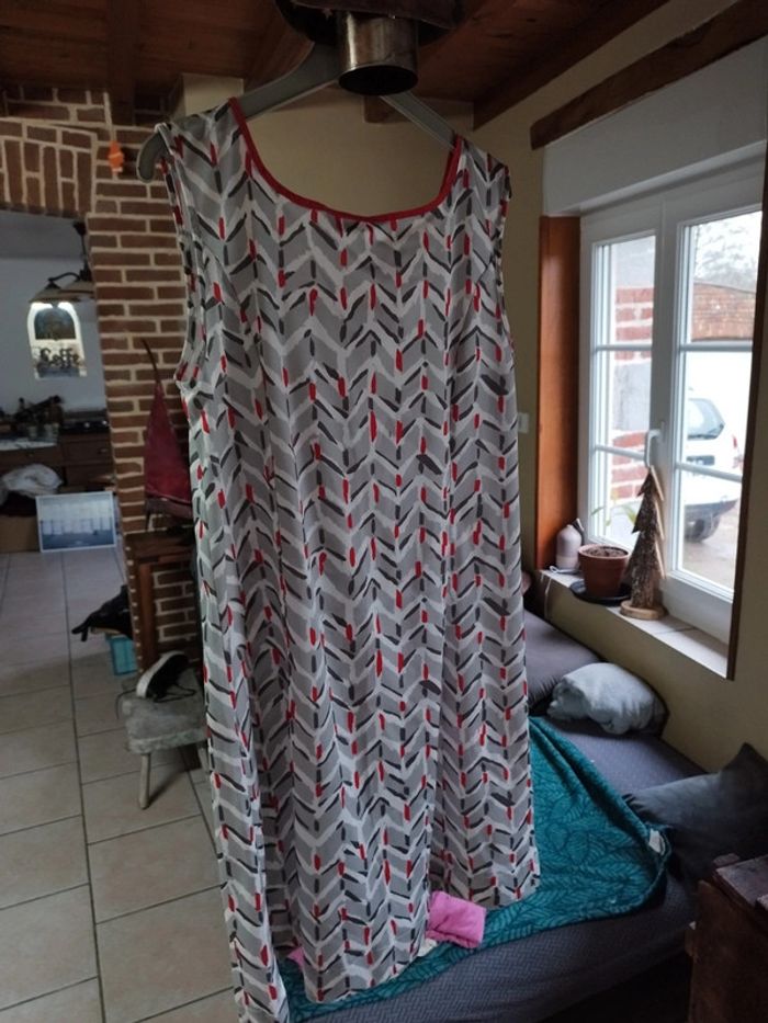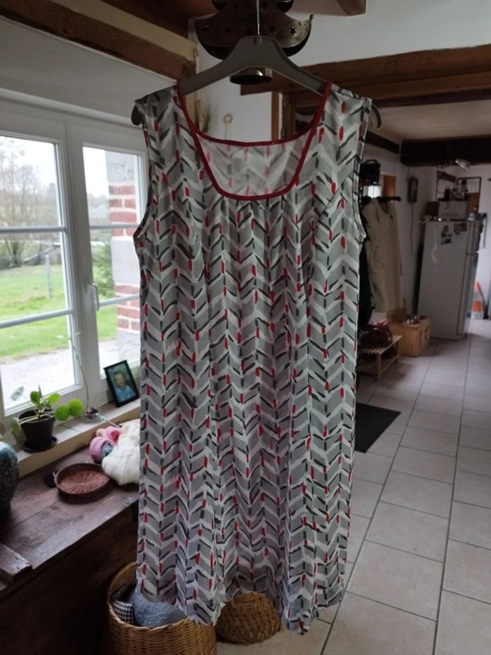 Jolie robe entièrement conçue et cousue par ma maman dans les années 90 Coupe simple, agréable à porter Couleurs: gris, gris foncé, rouge et blanc Tissu polyester et elasthane Très bon état Taille unique, vérifiez vos mesures : Aisselles : 50cm Taille : 50cm Hanches : 55cm Longueur : 93cm