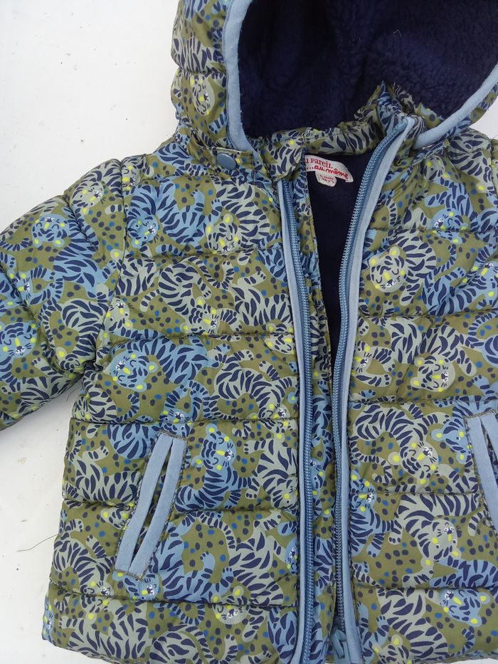 Manteau, veste, doudoune bébé garçon du pareil au mm 6 mois mixte, bébé  motif jungle, vert, bleu, DPAM, hiver, intérieur polaire, doublé - photo numéro 3