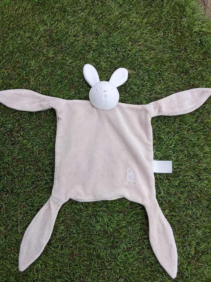 Doudou mouchoir, beige Blanc tête lapin, pattes,  obaibi - photo numéro 1