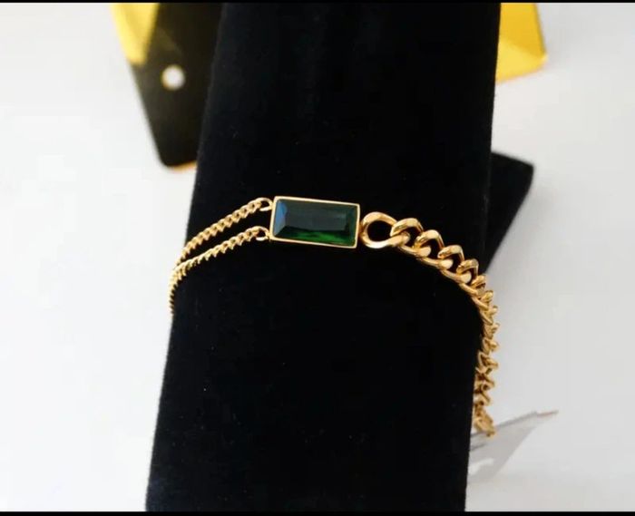 Bracelet en chaîne et pierre verte - photo numéro 2