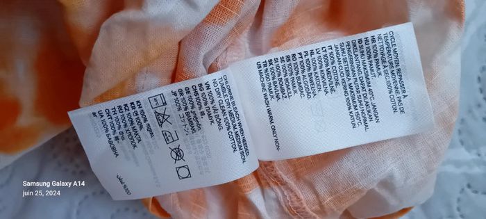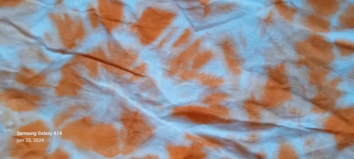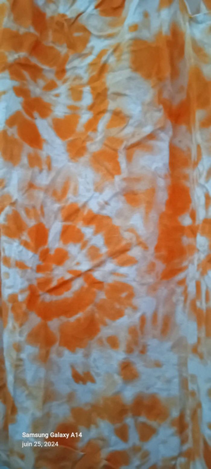 Robe longue en coton avec fines bretelles élastiques motif die and dye orange et blanc made in india longueur 78 cm largeur aisselles à aisselles 42 cm jamais porté état neuf #midole #midoleenfant #midolefille12ans #midolefille #robelongue #robeestivale #robetieanddye #tieanddye #fille12ans #robelongueestival e #robefille12ans #hm #madeinindia