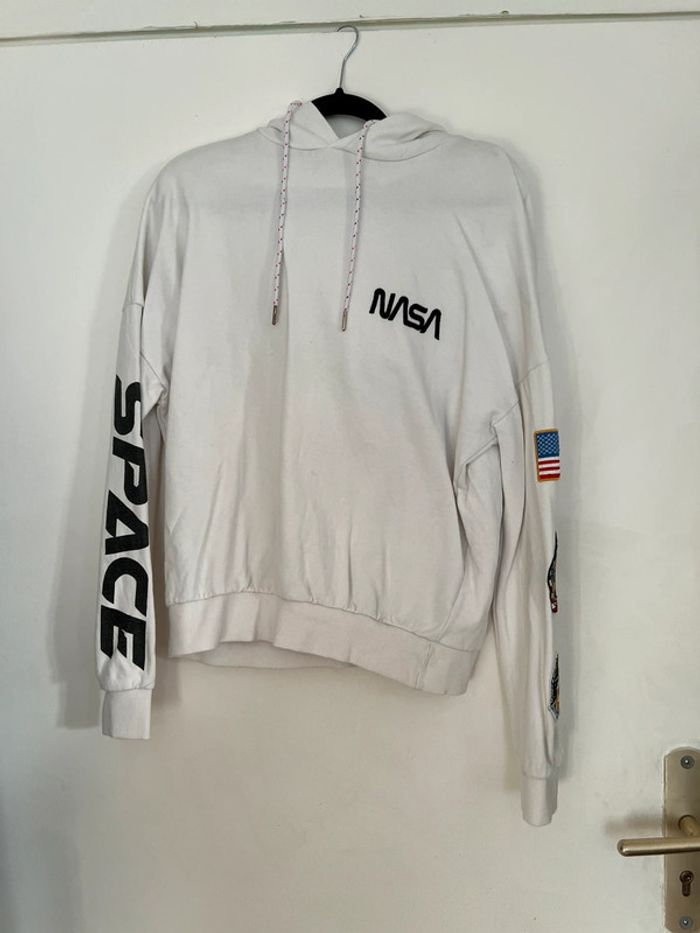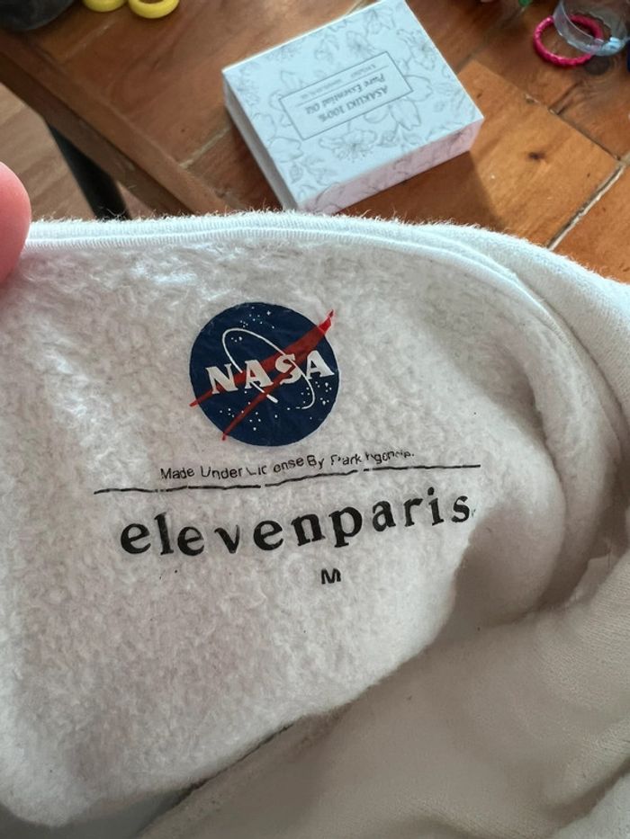 Sweat capuche Eleven Paris NASA Taille M blanc En très bon état sauf que petit tache voir photo