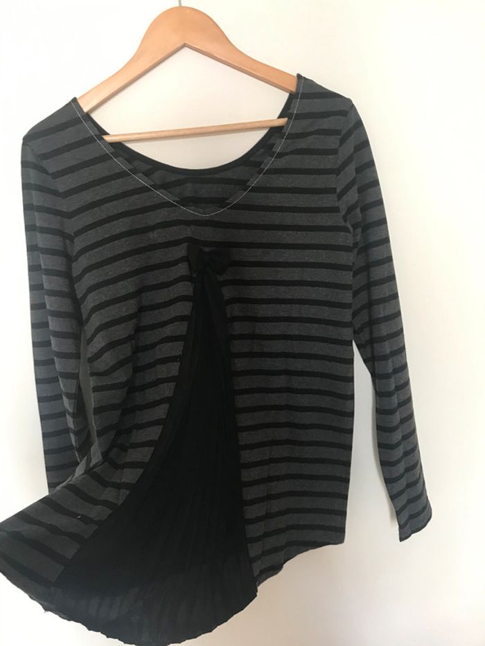 Jolie haut à manche longue gris à rayures noires de la marque #littlemarcel taille M=36 Neuf avec étiquette