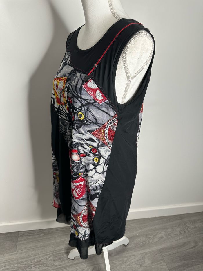 Robe bariolée - Excellent état - Taille 42 équivalent XL - Marque Cicero - Noire et multicolore - Empiècements en mesh - Sans manche - Polyamide, élastane et polyester