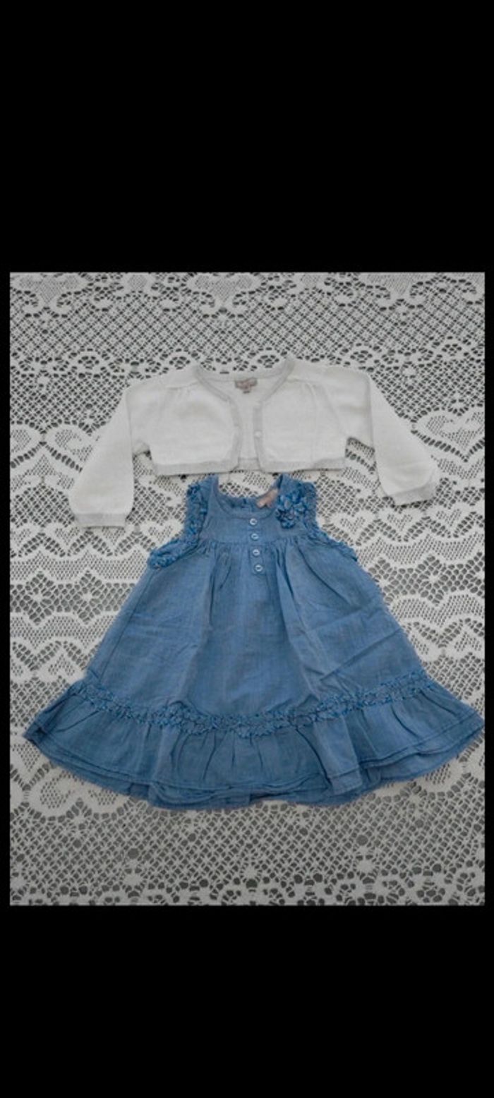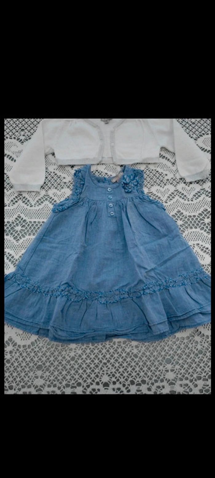 💙Robe bleue et son boléro blanc 6 mois Grain de blé - photo numéro 1
