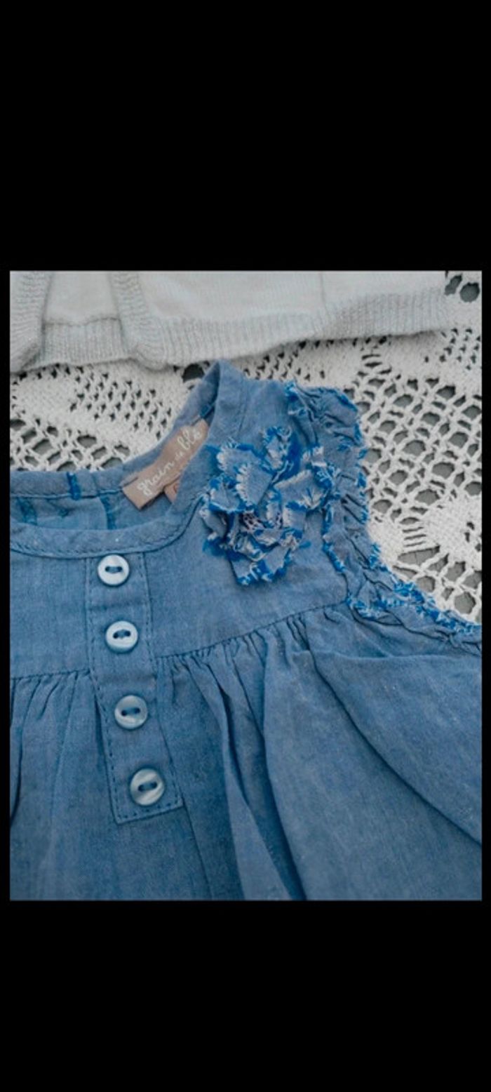 💙Robe bleue et son boléro blanc 6 mois Grain de blé - photo numéro 5