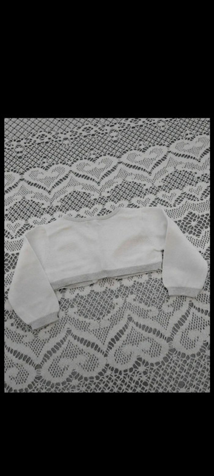 👗Magnifique robe d'été bleu avec paillettes argentées sans manches, fermeture boutons au dos et son boléro blanc avec liseré argenté. 👗Idéal cérémonie. 👗Excellent état, peu porté. 👗Voir photos pour les détails. ❌Prix non négociable.❌ 💰Réductions sur lot activées. #pnmettefille6mois