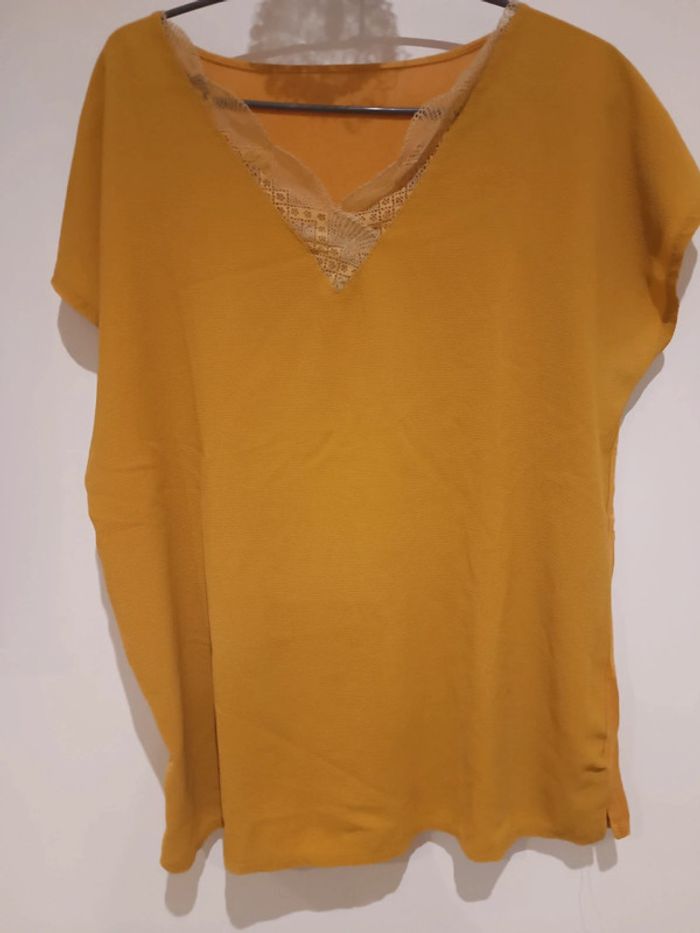 Haut moutarde camaïeu taille xxl avec décolleté en dentelle