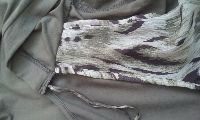 Très joli haut 2 en 1, les 2 éléments sont cousus ensemble, le "faux débardeur" est en voile légèrement transparent, attention coloris kaki!