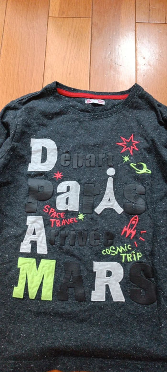 T-shirt manches longues gris départ Paris arrivée mars du pareil au même 10 ans - photo numéro 4