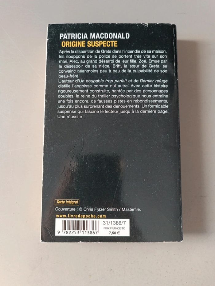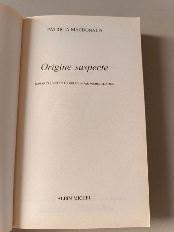Patricia McDonald origine suspecte. Voici le lien pour voir tous mes livres : #romain75015_Livres. Envoi rapide et soigné bien protégé pour le transport.