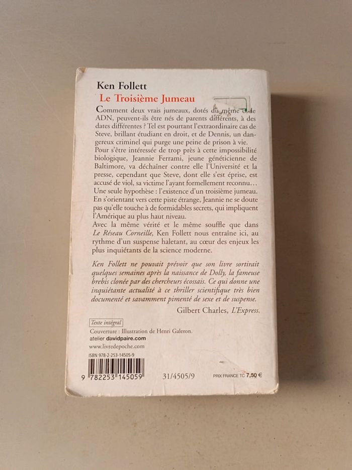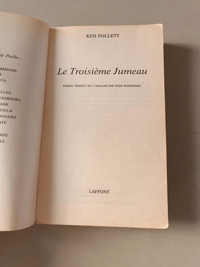 Ken Follett le troisième jumeau. Les pages sont dé-reliées en bas à gauche. Voici le lien pour voir tous mes livres : #romain75015_Livres. Envoi rapide et soigné bien protégé pour le transport.